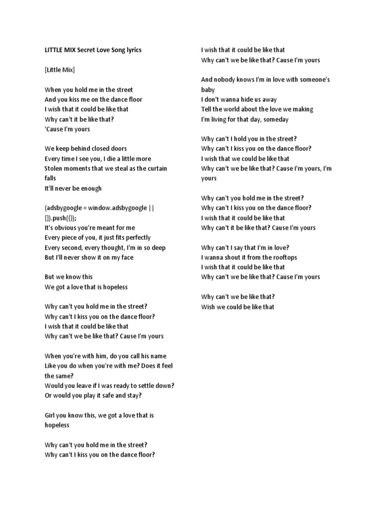 ꜱᴀᴅ ꜱᴏɴɢꜱ |✓ - Secret Love Little Mix - Wattpad
