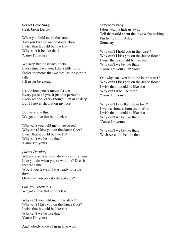 DOC) “Secret Love Song” | unknown blank - Academia.edu