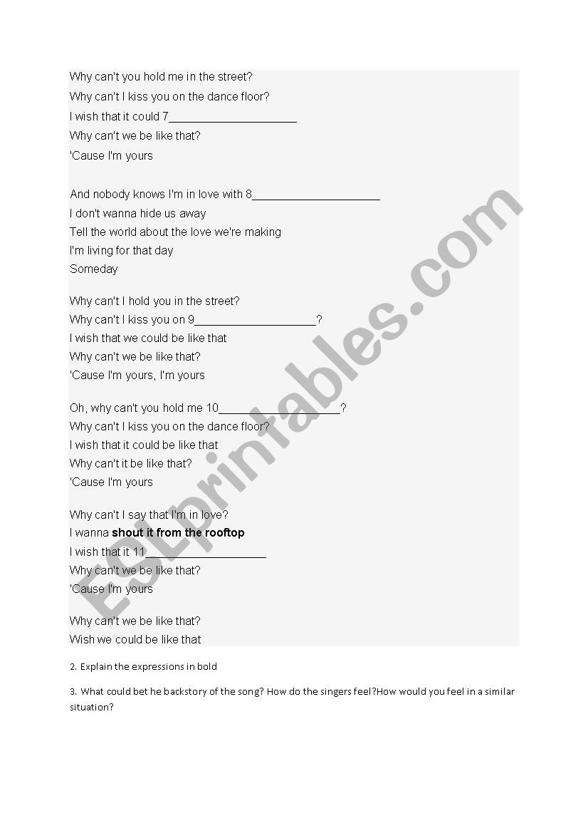 Why can’t you hold me in the streets? Why can’t i kiss you on