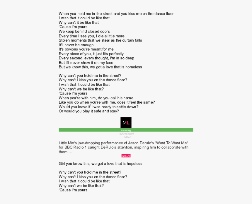 SECRET LOVE SONG” LYRICS by LITTLE MIX FEAT. JASON DERULO: When …