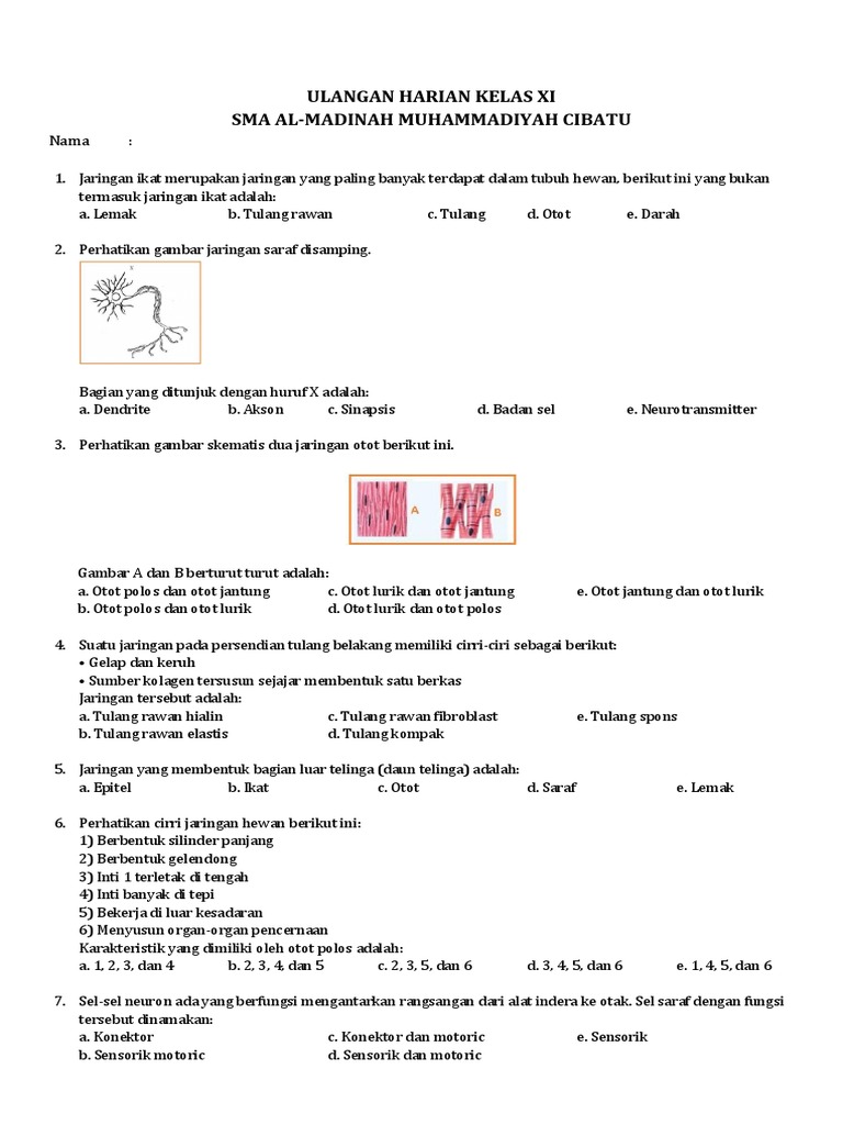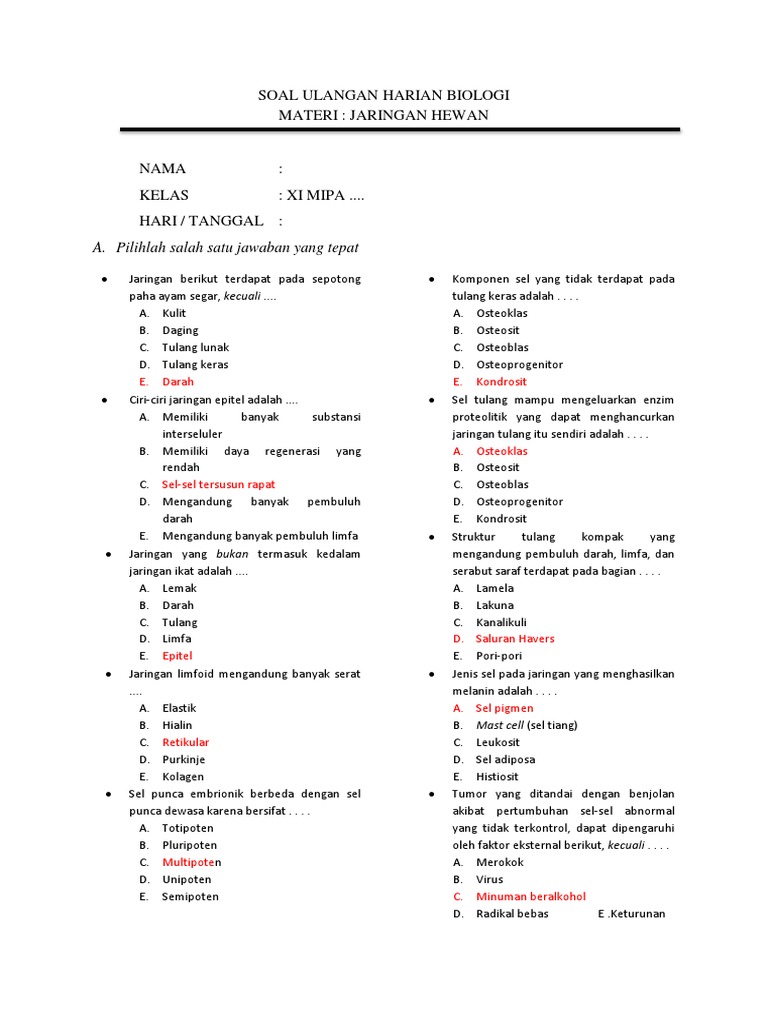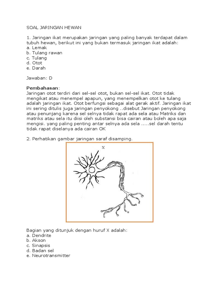 SOAL PILIHAN GANDA BESERTA JAWABAN JARINGAN HEWAN | BERBAGI ILMU