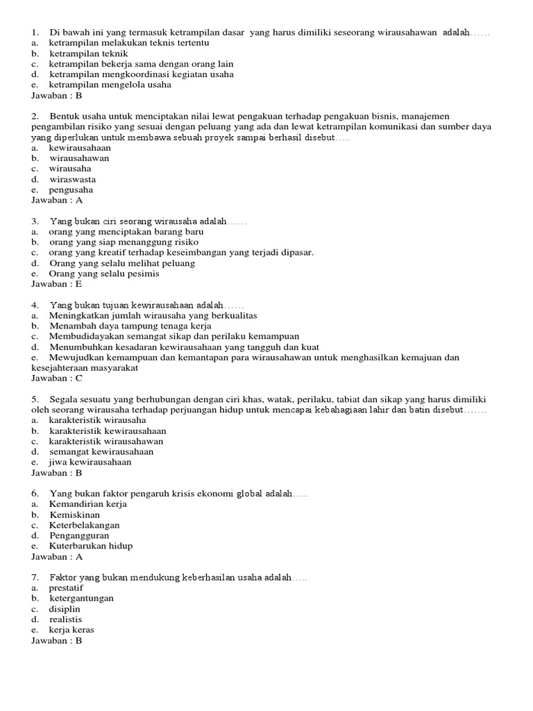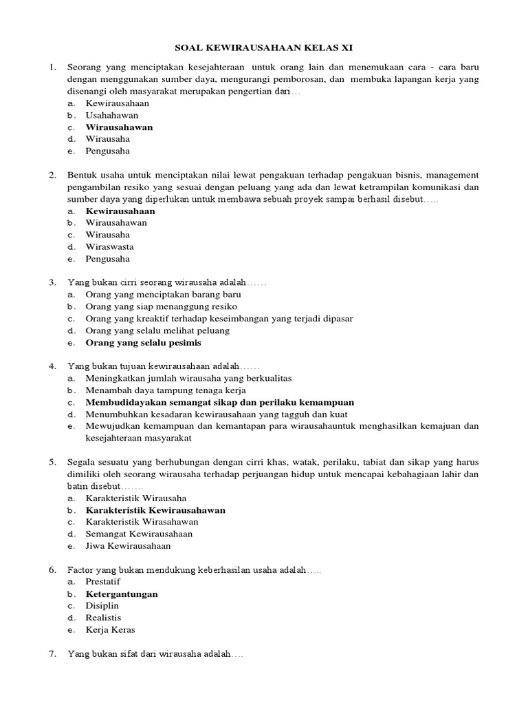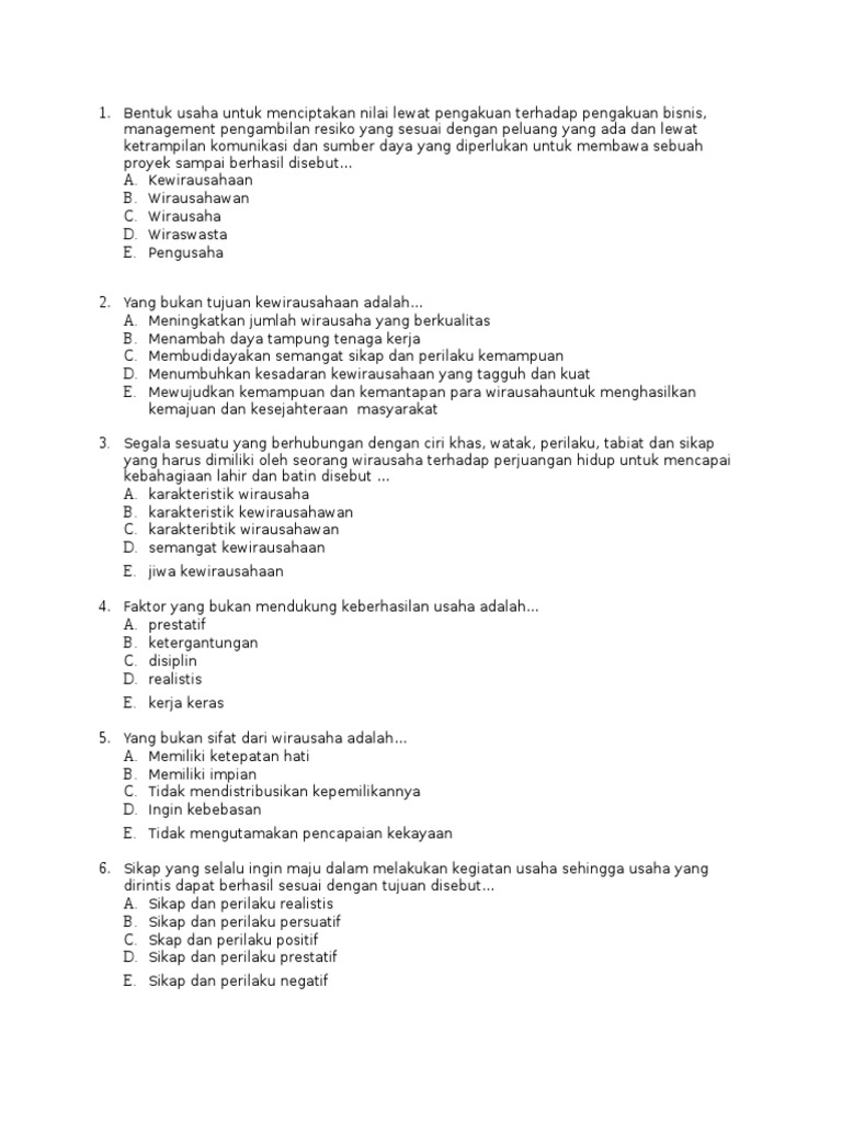 DOC) Soal kewirausahaan | umi irianti - Academia.edu