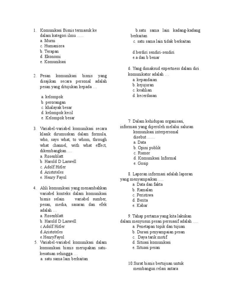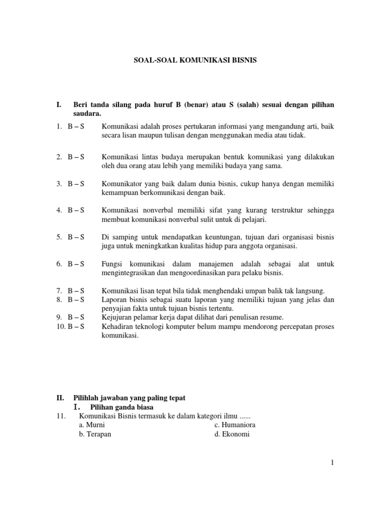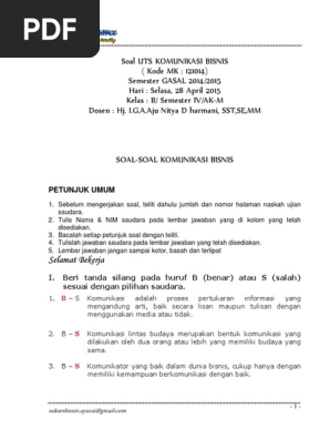 SOAL-SOAL KOMUNIKASI BISNIS - PDF Free Download