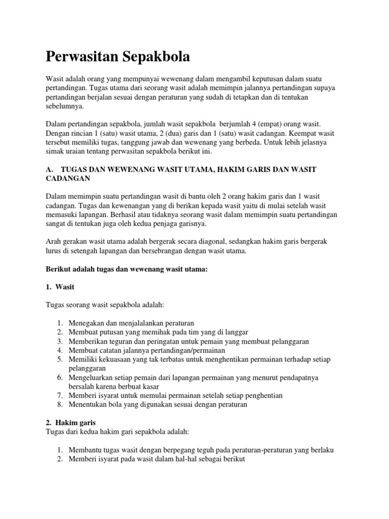 Tugas Wasit Sepak Bola Dan Posisinya by milency02 - issuu