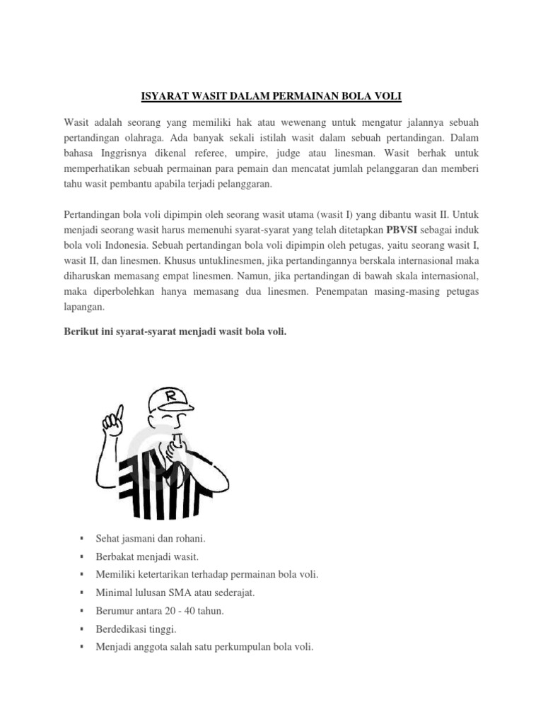 Syarat dan Ketentuan Dan Tugas Wasit Dalam Permainan Bola Voli …