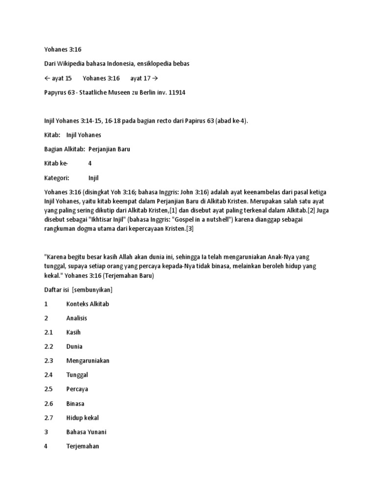 Yohanes 3:16 - Wikipedia bahasa Indonesia, ensiklopedia bebas