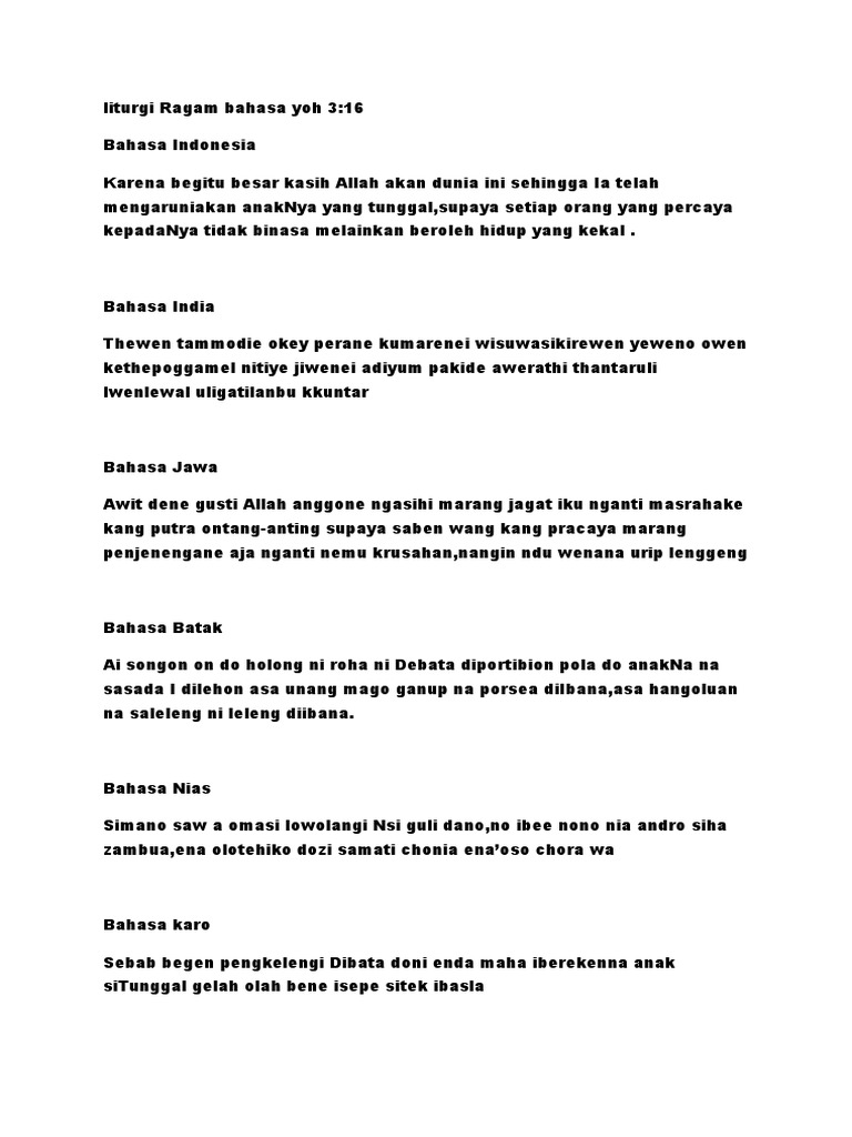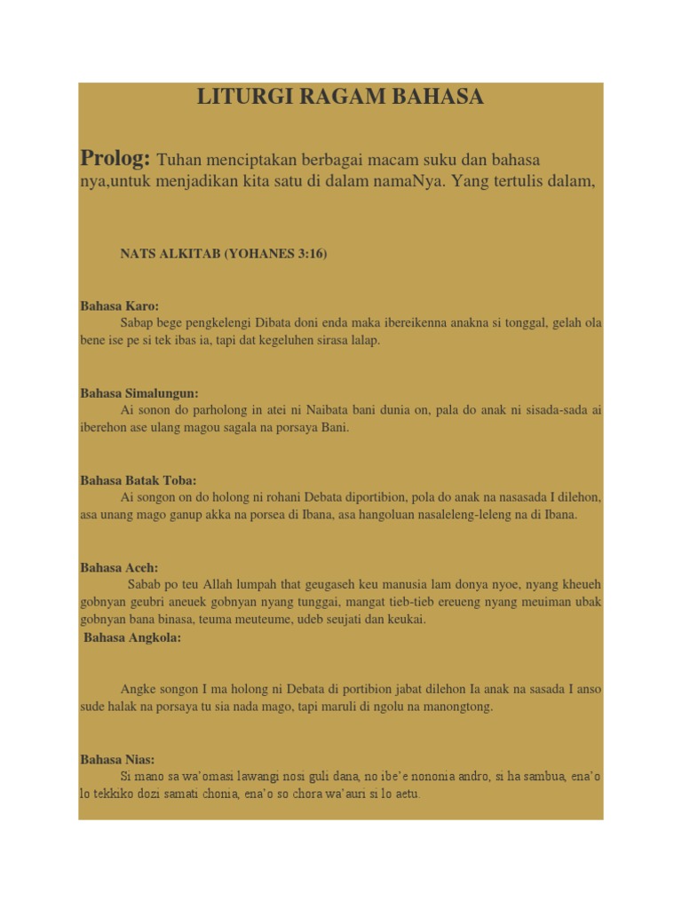 Liturgi Ragam Bahasa Daerah Di Indonesia